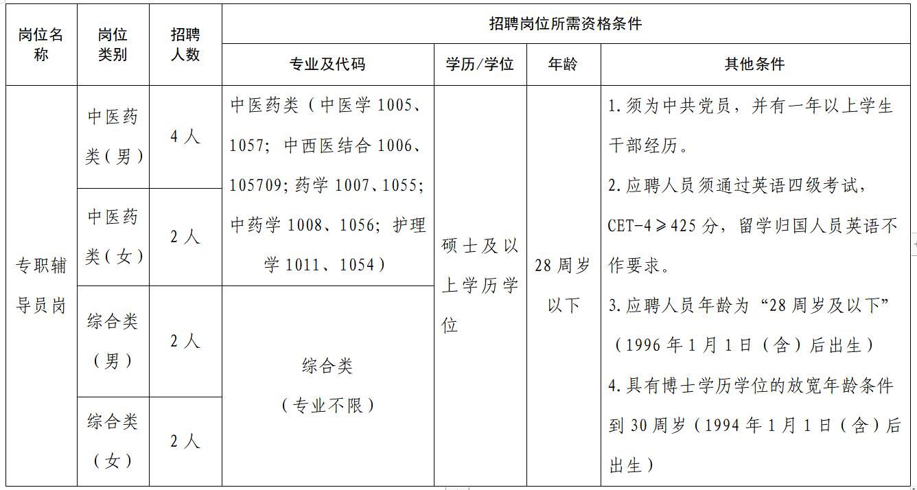 自2024年5月27日起到2024年6月10日截止,应聘人员网上报名,报名网址:http://zhaopin.ahtcm.edu.cn:8898/zp.html#/报名须在线注册并按要求投递简历及相关附件材料,应聘岗位须与学校发布的招聘岗位计划保持一致,每人限报1个岗位。